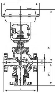 气动三通调节阀有合流和分流两种结构形式。阀芯结构采用圆筒薄壁窗口,并采用阀芯侧面导向,三通阀在某些场合可以替代两个二通阀和一个三通接管而等到广泛应用常用于热交换器的两相调节,也可用于简单的配比调节。公称通径和压差较小时,合流阀可用于分流场合,可互换使用,但公称通径大于80mm和压。差较大的分流场合,不能互换使用。